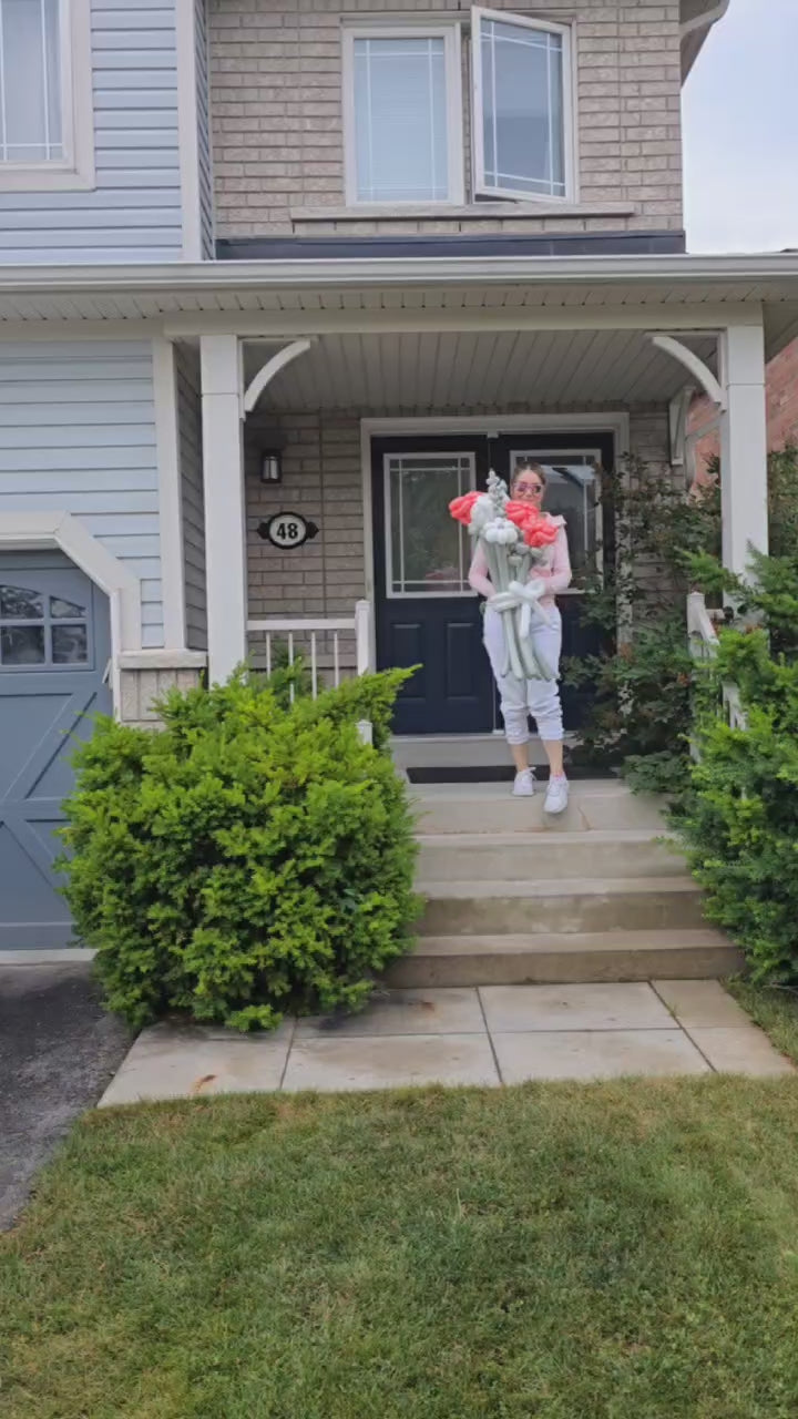 Celebrate love, joy, and elegance with our Blush Bloom Balloon Bouquet โ a handcrafted arrangement featuring soft coral and white balloon flowers paired with delicate greenery accents. Perfect for birthdays, anniversaries, or just to brighten someoneโs day, this stunning bouquet is sure to make a lasting impression. Light, graceful, and full of charm, it's a unique twist on classic florals with a playful touch.