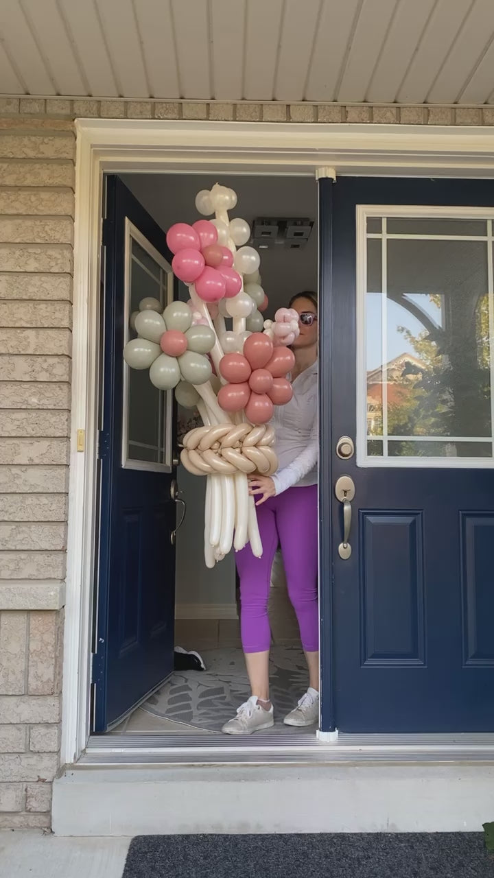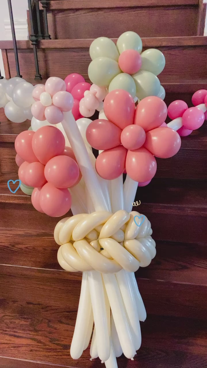 Brighten any occasion with this beautiful, earthy-toned balloon flower bouquet! Featuring a charming mix of blush, peach, and cream-colored blooms, this large balloon bouquet brings a fresh and rustic feel to any outdoor or indoor celebration. The intricately woven balloon stems add a creative and playful touch, making it a unique addition to birthdays, garden parties, or special events. Perfect for those who love natural beauty with a whimsical twist!