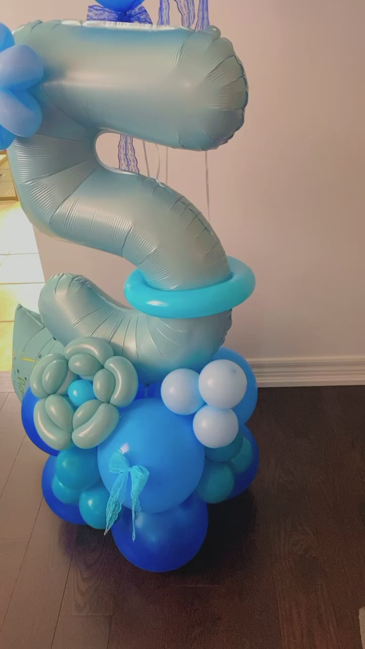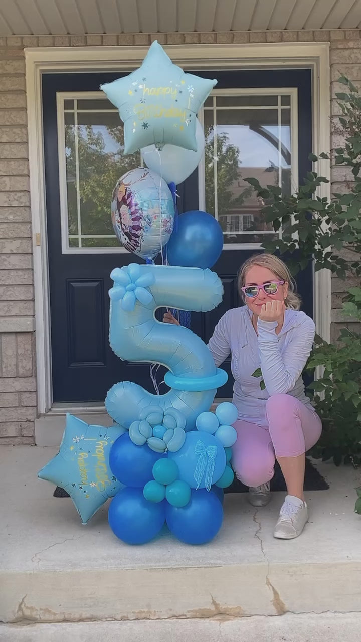Celebrate a magical 5th birthday with this Frozen-inspired balloon display! Featuring icy blue and silver balloons, including a large number '5,' shimmering snowflake accents, and themed character balloons, this arrangement brings the enchantment of winter to life. Perfect for fans of the beloved Frozen movie, this balloon setup adds a fun and festive touch to any birthday celebration, making it truly unforgettable!
