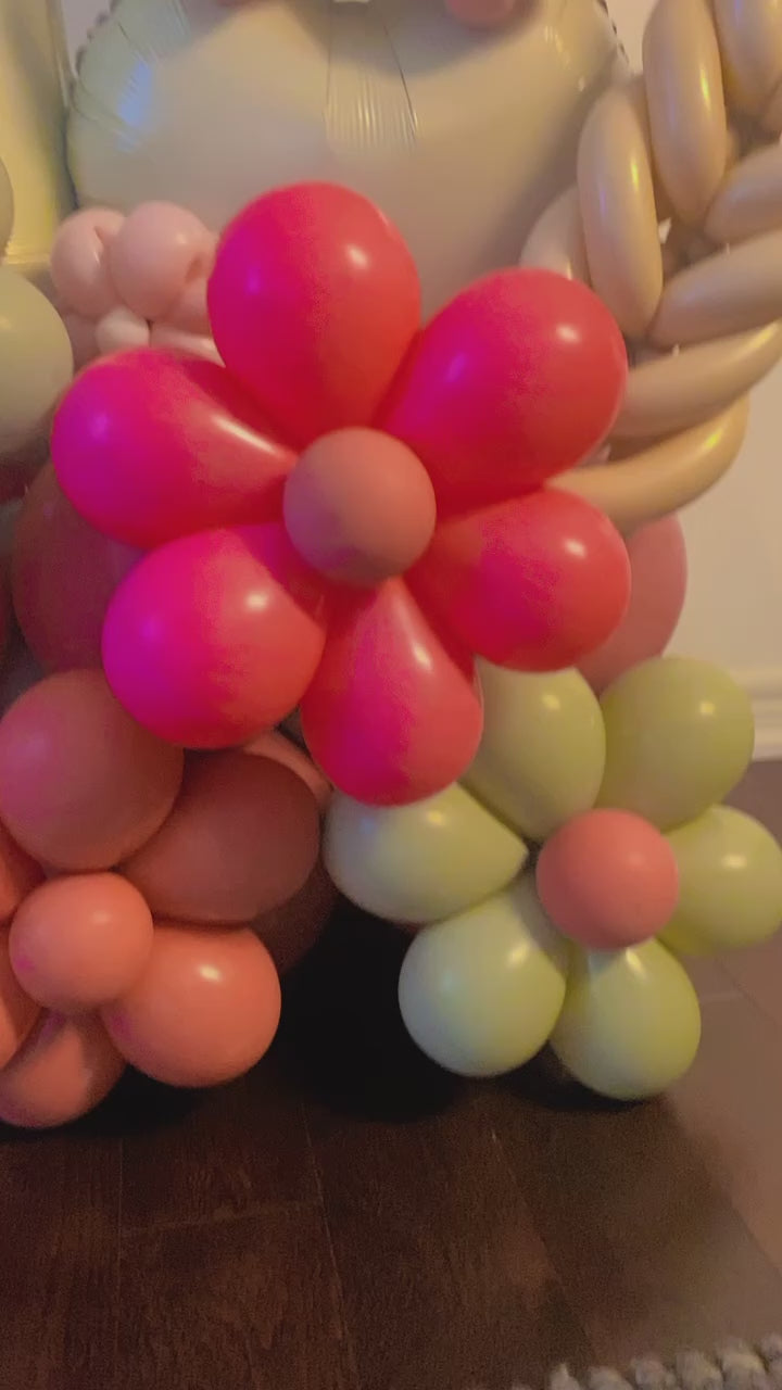 Celebrate a remarkable 70th birthday with this beautifully crafted balloon display featuring soft earth tones and floral accents. The large sage green balloon numbers are adorned with rustic flowers in blush, peach, and cream, creating a harmonious natural look. Perfect for outdoor celebrations or adding a touch of elegance to any party, this arrangement brings together warmth and charm. A perfect backdrop for memorable photos and a lasting tribute to a milestone birthday!