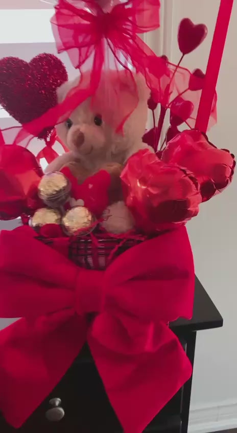 🎈 Adorned with romantic hearts, a plush teddy bear, and delicious chocolates