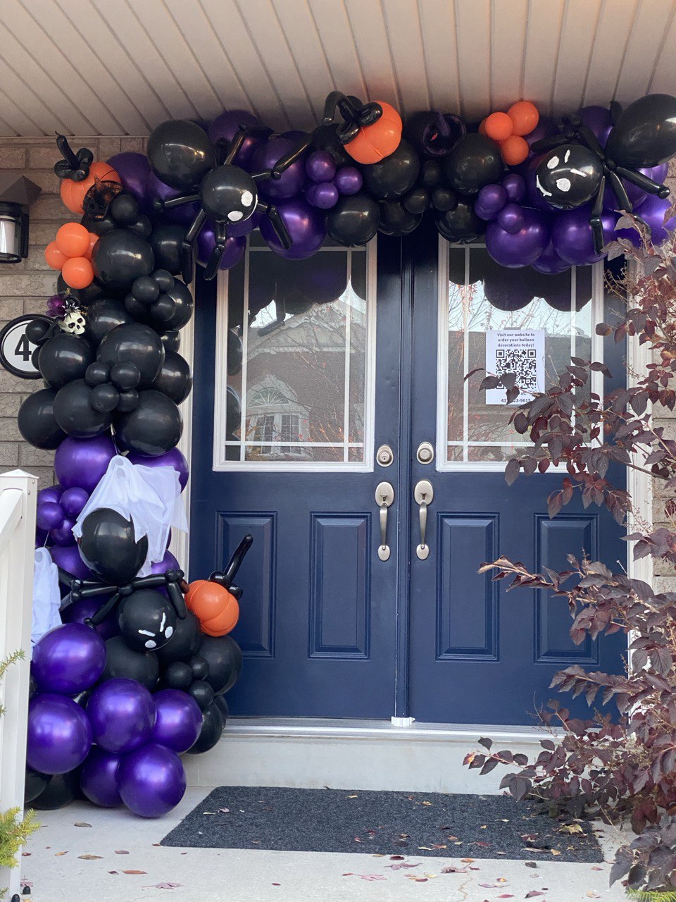 Make a spine-chilling first impression this Halloween with our Spooky Spider Balloon Archway! This custom-designed balloon display features eerie black and purple balloons intertwined with creepy-crawly spider balloons, ghostly drapes, and festive orange accents. Perfect for doorways, this decoration will welcome trick-or-treaters and guests with a hauntingly fun vibe. Transform your entrance into a Halloween statement piece thatβs sure to thrill all ages!